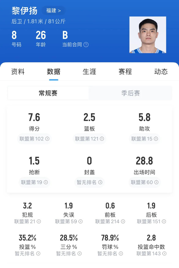 黎伊扬方面,福建为黎伊扬提供了一份C类合同,其他球队可以于7月30日前匹配。黎伊扬上赛季可以场均拿下7.6分2.5篮板5.8助攻,场均出场达到28.8分钟,是球队的主力本土控卫。